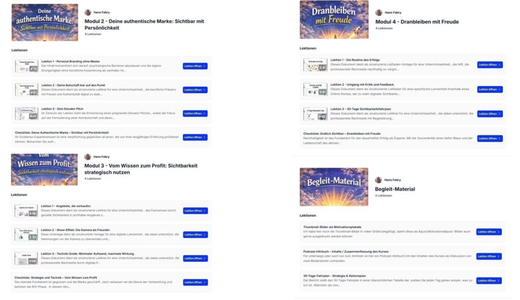 Hier bekommen Sie einen kleinen Einblick zu den Modulen und Lektionen als Übersicht